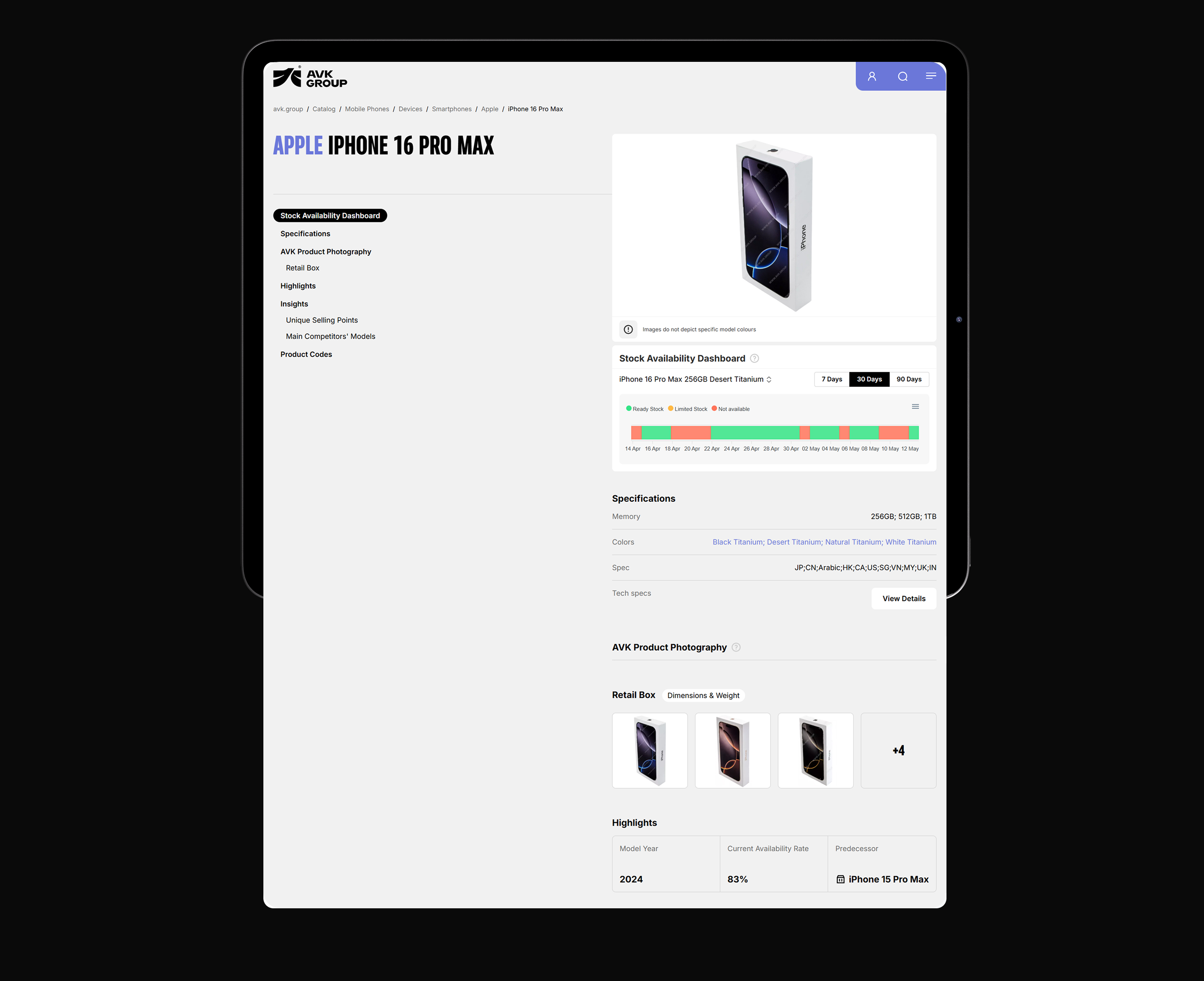 Провели анализ бизнес-процессов AVK Group, целевой аудитории и конкурентов. Определили ключевые требования к функциональности, дизайну, производительности и безопасности платформы. Разработали техническое задание, учитывающего все особенности бизнеса компании и требования к интеграции с 1С