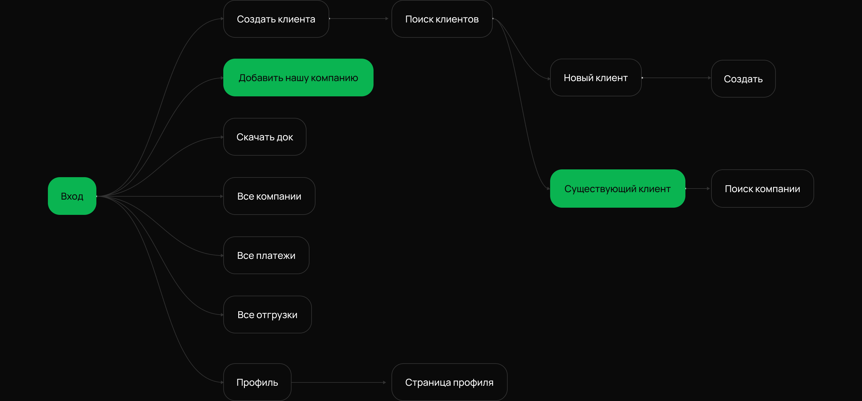 Разработали чёткий сценарий взаимодействия пользователя с системой. Это помогло продумать навигацию, расположение функций и сделать работу с кабинетом интуитивной. Мы описали путь клиента от входа в систему до завершения сделки