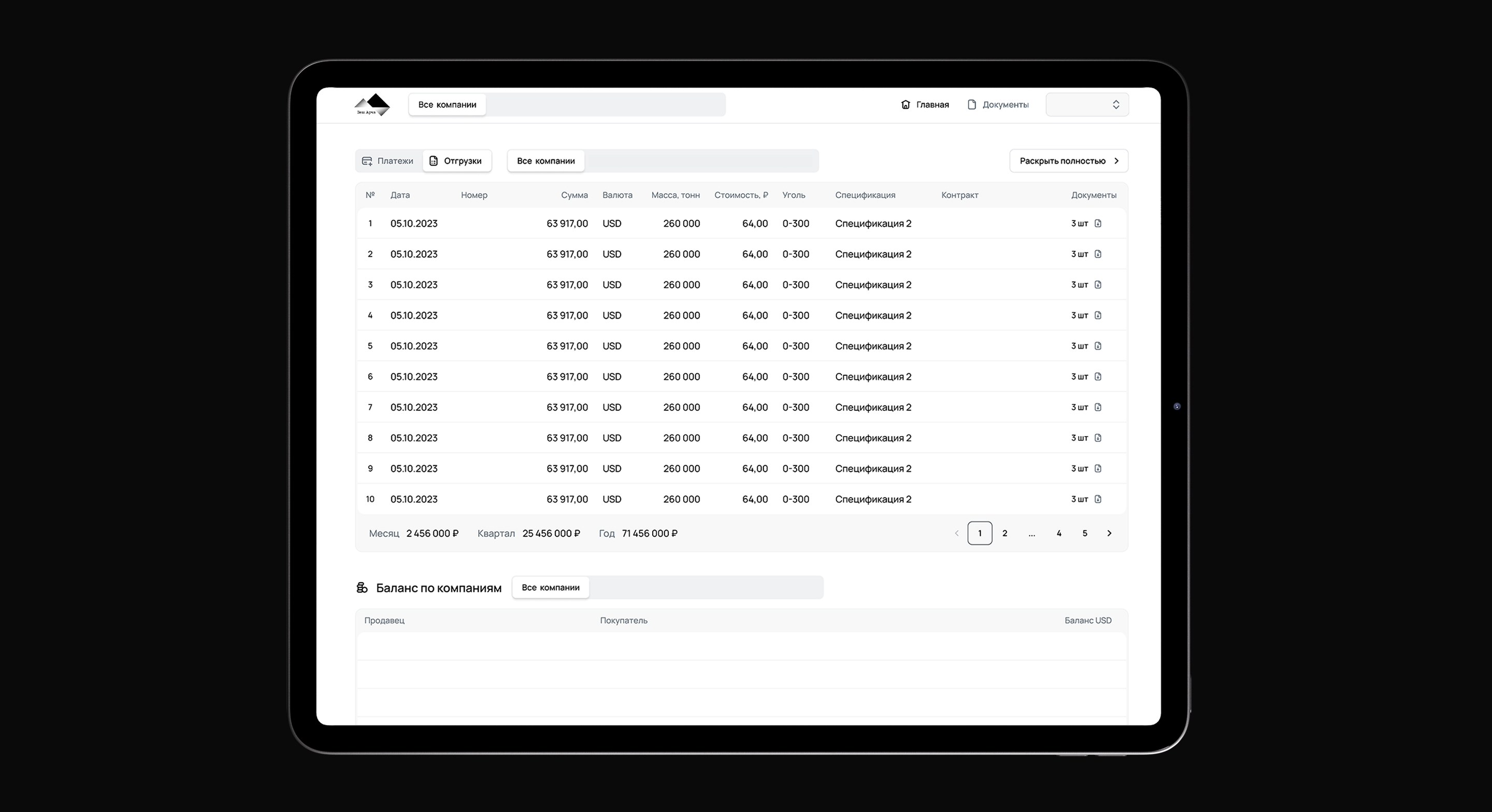 Обеспечил централизованный доступ к документам: контрактам, спецификациям, доп. соглашениям и счетам. Клиенты могут просматривать и скачивать все материалы. В удобной таблице представлена информация об отгрузках: станция, дата, объем, фракция, вагоны и сумма. Акт сверки показывает все деньги и отгрузки, что гарантирует прозрачные взаиморасчеты. Связь с менеджером осуществляется через интегрированный чат