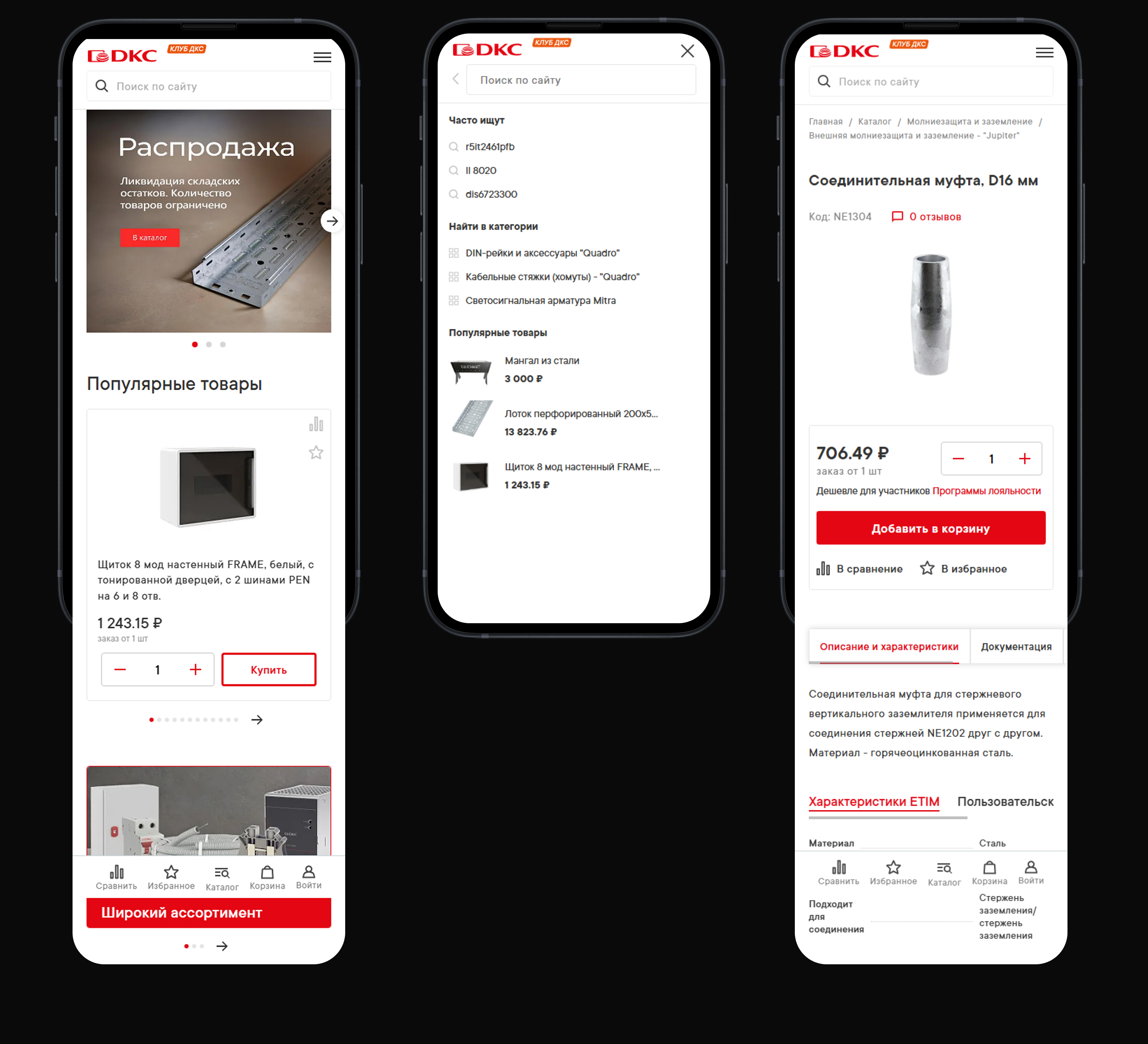 Интеграция с API DKC позволяет получать товары и их характеристики для нашего каталога. Мы также настроили автоматическую загрузку и обновление документов, сертификатов и чертежей
