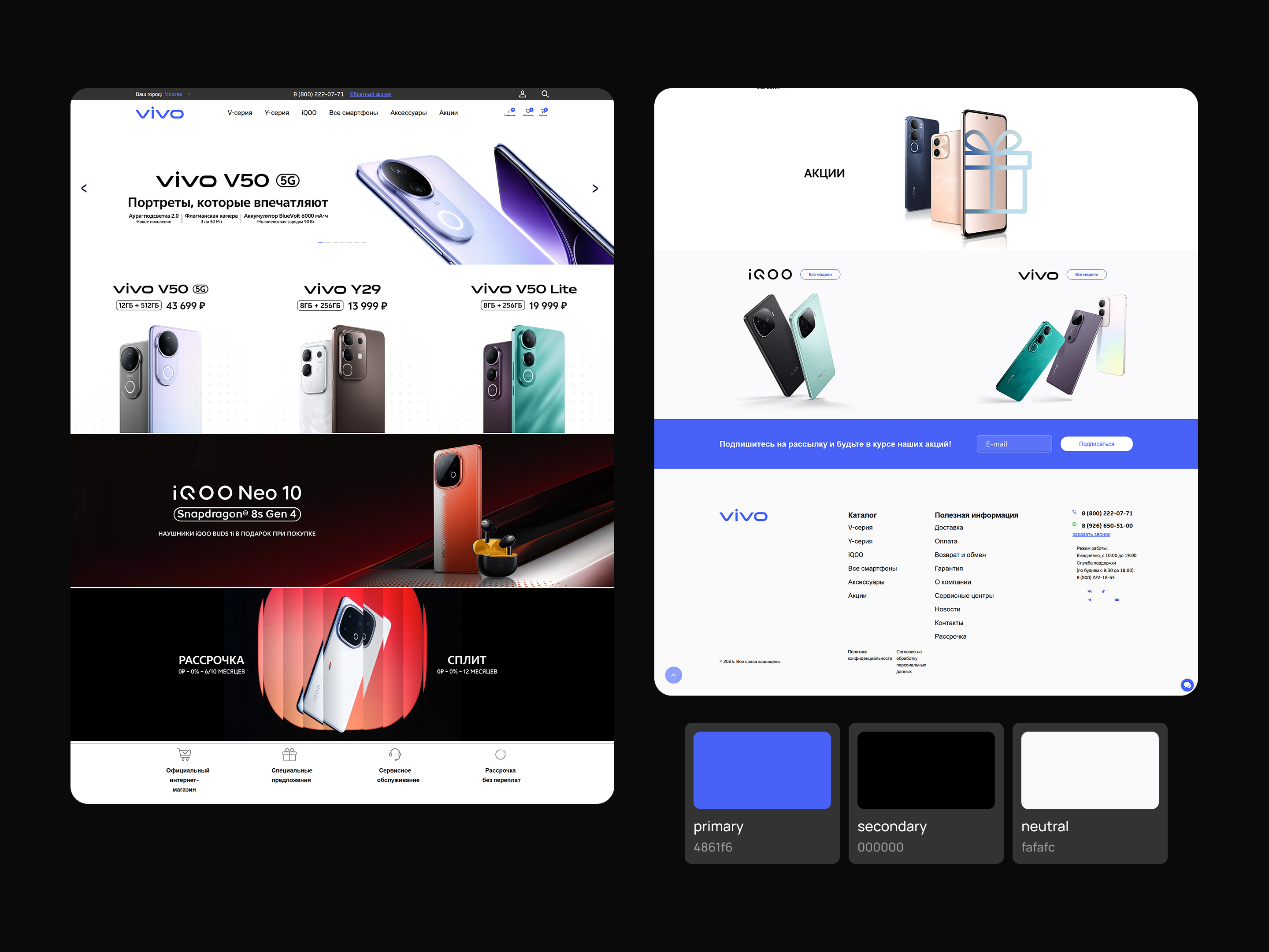 Обновили цвета, шрифты, логотипы и другие элементы дизайна в соответствии с брендбуком VIVO